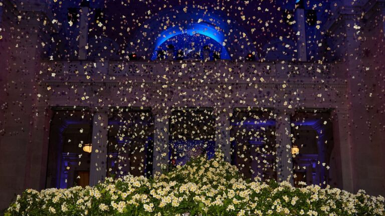 In 2024, Ávila and the Vogue special events team turn the Temple of Dendur into an enchanted forest. Last year’s event—“Superfine: Tailoring Black Style”—took inspiration from famed artist Cy Gavin’s narcissus flower motif, which was a nod to “self-recognition,” and sparked a floating tower of narcissus flowers as the Great Hall centerpiece.
