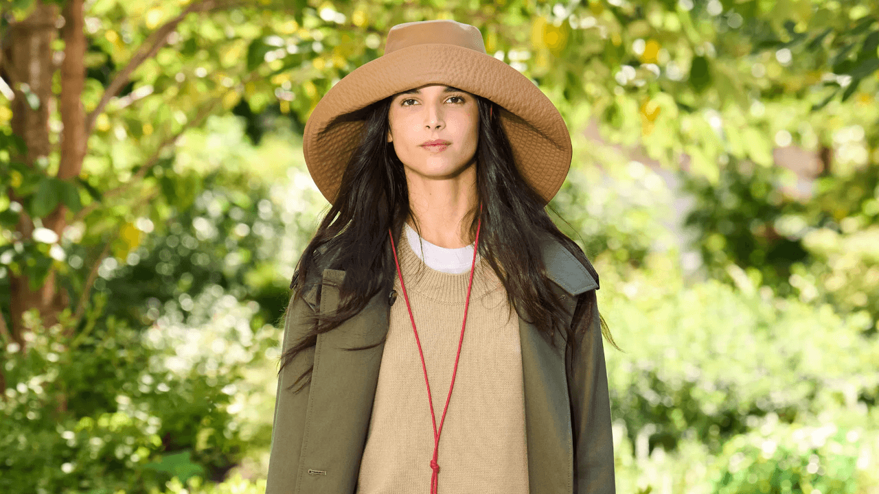 TWP and Gigi Burris teamed on what may be the chicest solution for humid hair: a water-repellant, wide-brim hat in a durable cotton gabardine (the same fabric used for trench coats). Let it lead your look with a tank dress and tall rubber boots. Simple, yet streamlined!